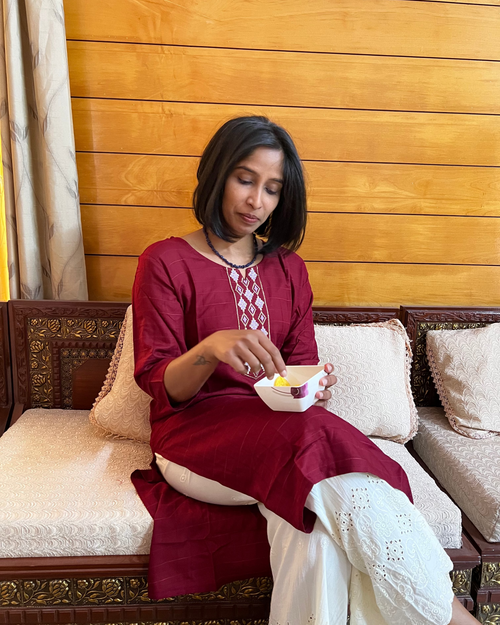 Embroidered Maroon Rayon-Silk Kurti with Paisley Detailing